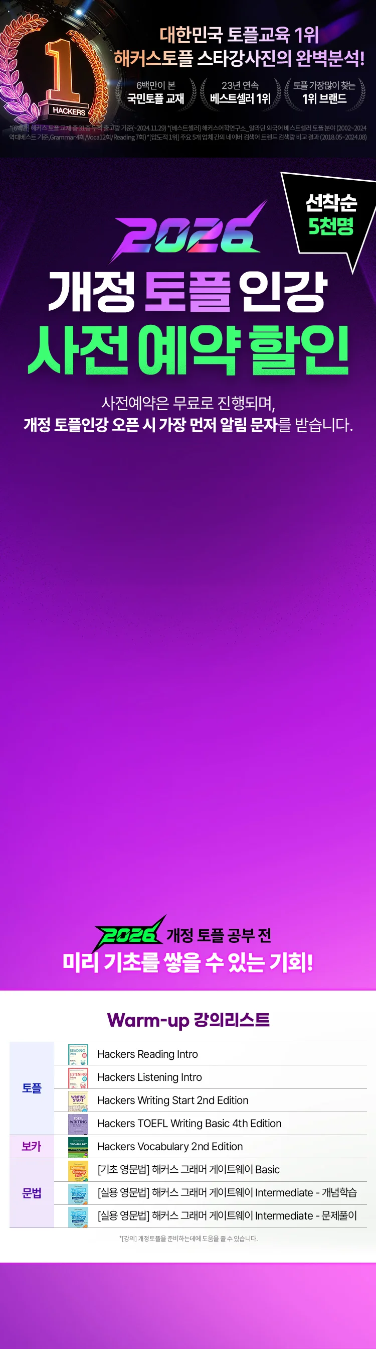 1) 해커스 개정토플인강 사전예약 이벤트 신청에 따른 혜택 발송, 안내 및 관련 문의 사항 응대